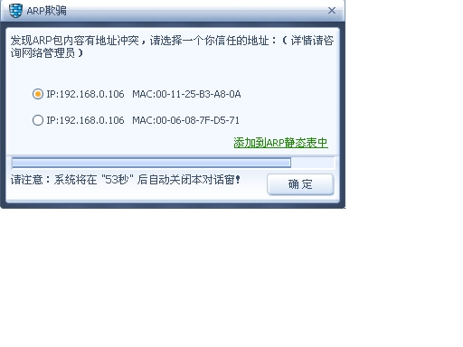 我已经设置了arp的静态绑定,但是没有用的,跳出来的ip和mac地址都不是我使用的,还要我选择,那怎么选都是错的啊。。。。。