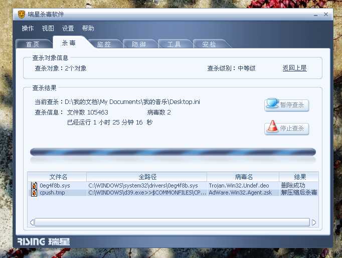 瑞星卡卡安全论坛技术交流区反病毒/反流氓软件论坛 【求助】电脑出现病毒Trojan.Win32.Undef.deo