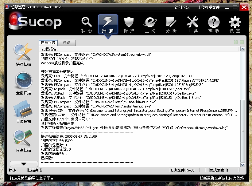 现在的问题是重启以后,用超级巡警快速扫描了一遍,还是发现了一个病毒,请问是咋回事呀?