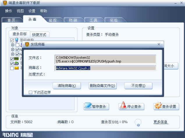 每次杀了后,再杀还有,删除染毒文件也删除不了,删了一杀又有了!