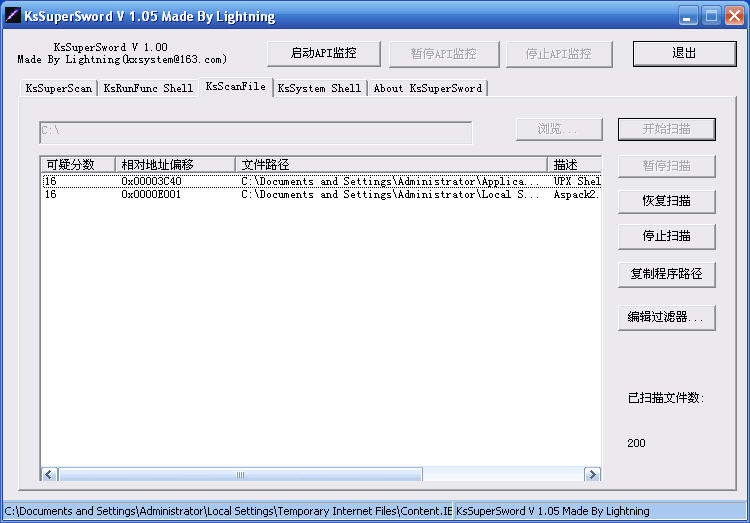 图为全功能版的KsSuperSword中的KsFileScanner.