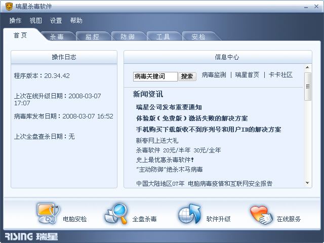 已经升级到瑞星2008了 以后继续升级就可以了 楼主的瑞星没问题