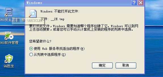 为什么我安全卫士360在桌面上的图标不是正常的?而是一个白白的图标,打开时它就提示我说,WINDOWS不能打开_3B.tmp文件,希望我选择打开的程序。。