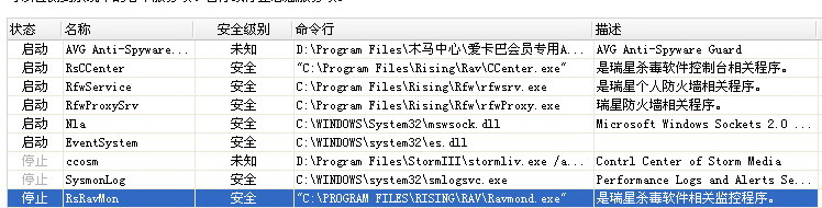 之前因RAVMOND.EXE占用CPU太高.重装瑞星和系统,现用360检测,发现RAVMOND.EXE服务未启动,可是在进程里却有这个RAVMOND.EXE进程,在设置有看全部开启监控.右下角的伞也全部是显示开启,也为绿色.不知为何360却说未启服务呢?到底有没有开启监控?请帮忙看看?[