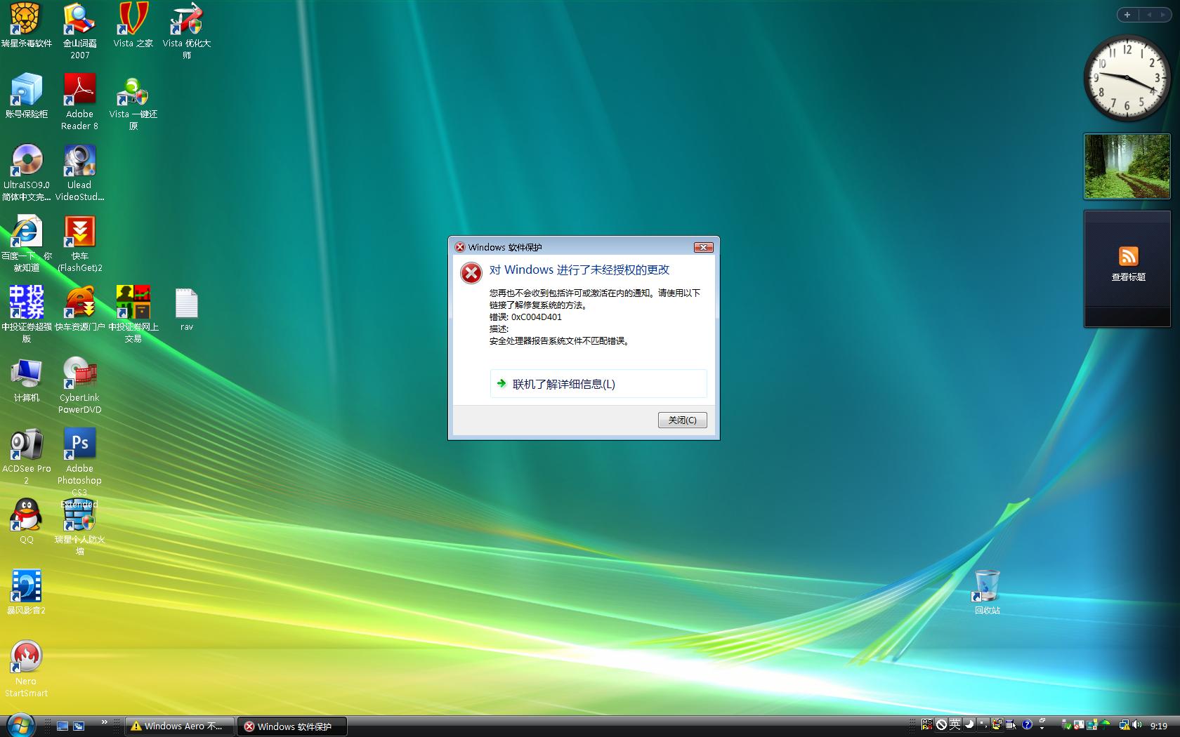 还有,Windows Aero 不工作!