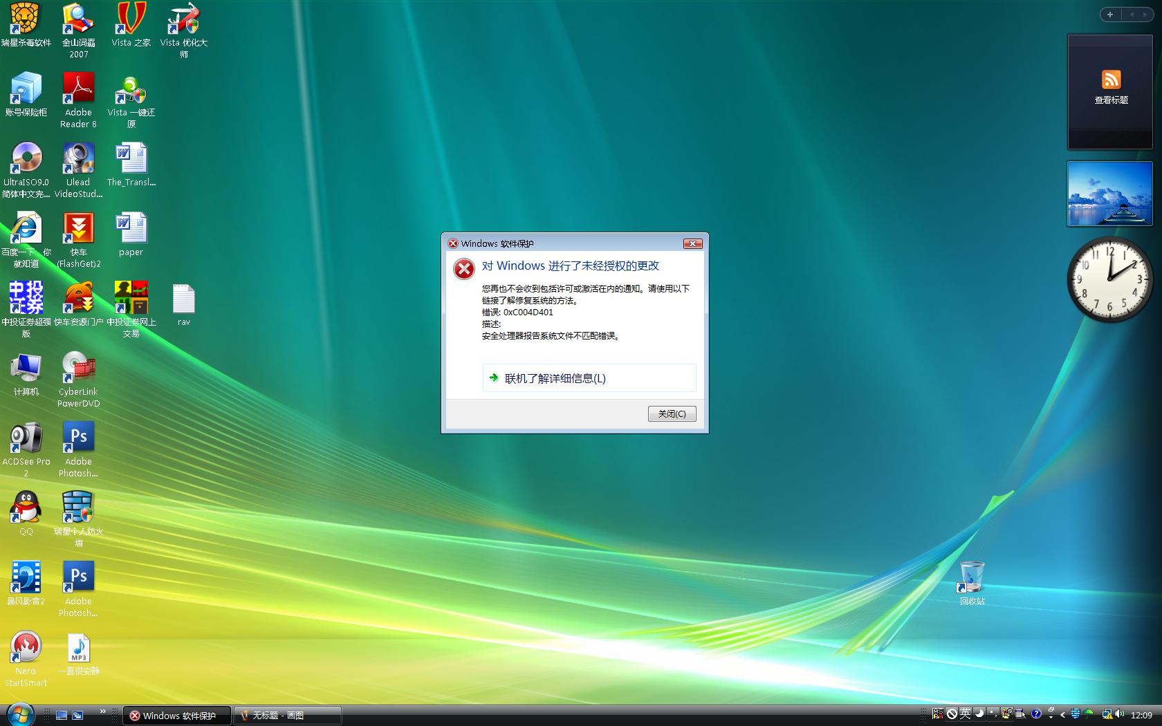 看来,我也得改用VisT自带的防火墙啦!刚刚又出现了“对windows进行了未经授权的更改”的窗口。两天没出现,我还以为不会出了呢!屏幕截图如下: