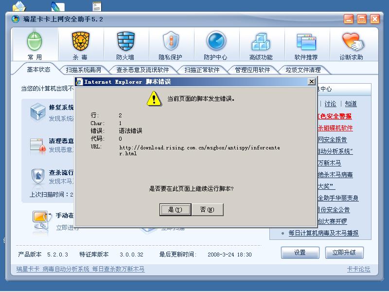 今天升级后,打开卡卡扫描,还是跳出脚本错误的提示,并且和原来的一样。