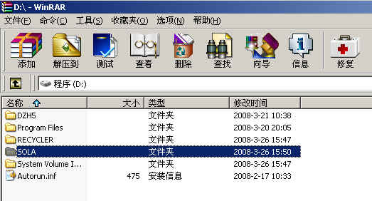 每个分区下都有1个Autorun.inf文件,一个SOLA文件包,文件包里有5个文件,分别是Autorun.inf,sleep.exe , SOLA.BAT ,Tasks.xxx  ,宅男请进.rar .