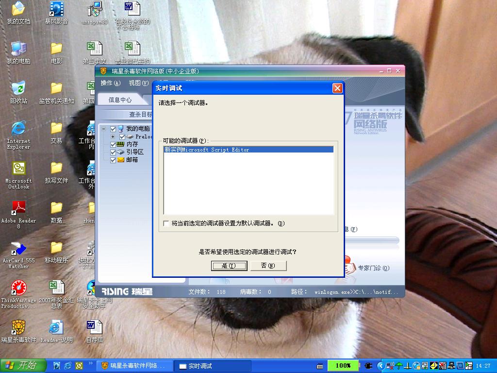 一启动瑞星,就弹出附件中的调试窗口,请问是什么问题?如何处理