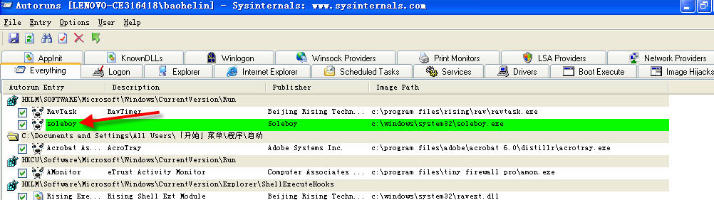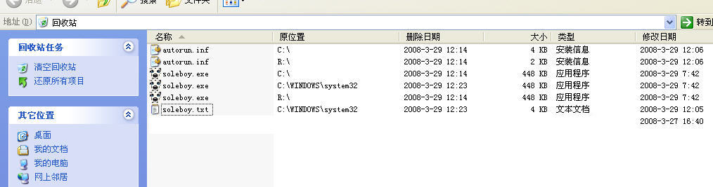 1、在各分区根目录下释放病毒文件autorun.inf和soleboy.exe。