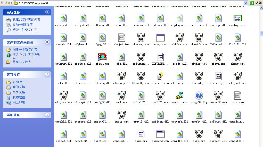 3、硬盘中所有.exe文件图标变为病毒文件图标————“小狗头”(图1),给人以“硬盘中所有.exe文件均被病毒感染”之印象。