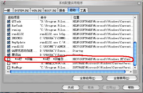 \HKEY_LOCAL_MACHINE\SOFTWARE\Microsoft\Shared Tools\MSConfig\startupreg”位置去找到想要删除的项目,这样就不会将全部清
