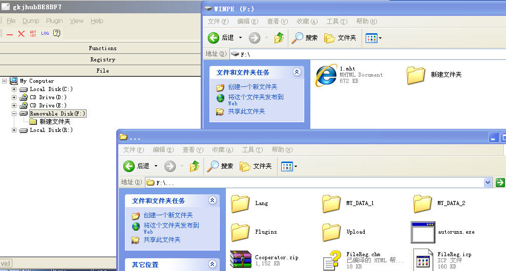 同一个U盘,在其根目录下再建一个普通文件夹,用IceSword查看————可以展开U盘目录树,但依然看不到这个“歧义文件夹”。在地址栏输入其完整路径能打开此文件夹并进行正常的存取操作。看下图: