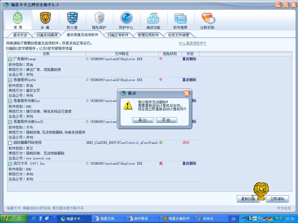 把杀毒软件升级到最新版后去杀毒,如果还有,就扫个日志发到反病毒专版里就可以了。