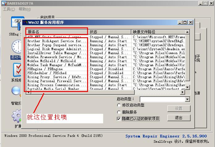 在扫日志的SRENG工具》启动项目》服务》Win32服务应用程序》里面找下面项删除,
