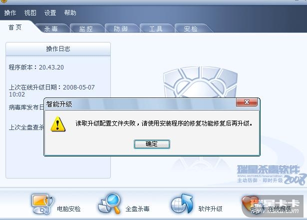经常无缘辜重启(触发什么API规则) 重启之后右下任务栏瑞星小雨伞不见了 开打瑞星杀毒软件升级失败需要修复 修复选项灰色不能选 只能卸载 每次都是这样烦死