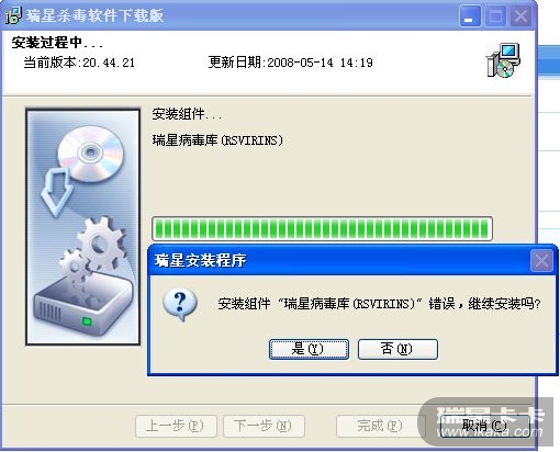 回复:修复时出现安装病毒库(RSVIRINS)错误