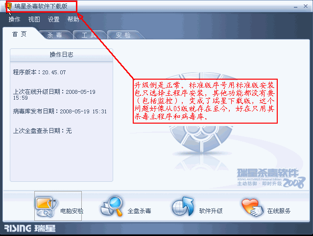 回复:为什么我的瑞星会突然变成“军队专用版”