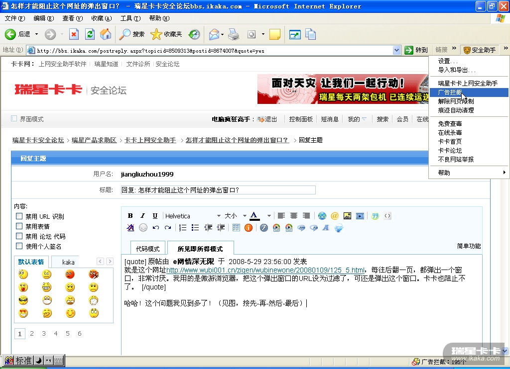 回复: 怎样才能阻止这个网址的弹出窗口?