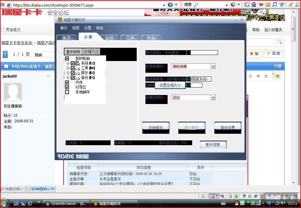 64位Vista系统下,瑞星这样提示的!!!
