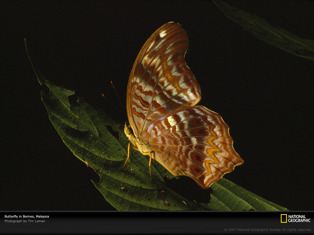 在婆罗洲的沙巴的丹浓谷保护区中,一只蝴蝶正在夜幕的掩护下优雅的在一片叶子上合翅休息。这片170平方英里(438平方公里)的保护区是马来西亚最大的原始低地雨林,有着世界上最复杂的生态体系之一。
