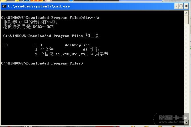 当你的电脑中了流行病毒后,自认为已经清除(也就是说按照所有版主说过的方法做过以后,并且在断网情况下使用一切正常),可是一旦上网就又反覆中招的时候。那么你就要点开始菜单里面运行,输入CMD按回车或点确认,这时就会进入仿DOS,接下来这样做一下看看<br>。。。。。。。。。。。。。。。。。。。。。。。。。。。。<br>cd\<br>cd\windows\downloaded program files<br>dir/w/a<br>。。。。。。。。。。。。。。。。。。。。。。。。。。。。<br>如果同图不一样,也就是说有多余的文件那么请你一定要删除。删除之前先记好名字,因为还要到注删表里删除相应的键值,一般应该是3个DLL文件加一个exe文件。一般在windows下无法全部删除,那就只有进入DOS下删除或进入PE里面删除。装了PE就可以直接在我的电脑里面删掉他,要是进DOS就有点麻烦。因为不能像我上面一样输入命令进入那个目录了。你就得先进入C盘,确定在根目录下后再<br>cd\windows\downlo~1 ///这是进入那个目录,不过根据个人电脑不同也许不一样<br>del *.* //删除所有文件<br>再输入一个Y<br>就可以搞定了。然后进入XP后再打开注册表搜索到相关的键删除它们就基本没事了。<br>最好在搞好后再装一个防火墙。