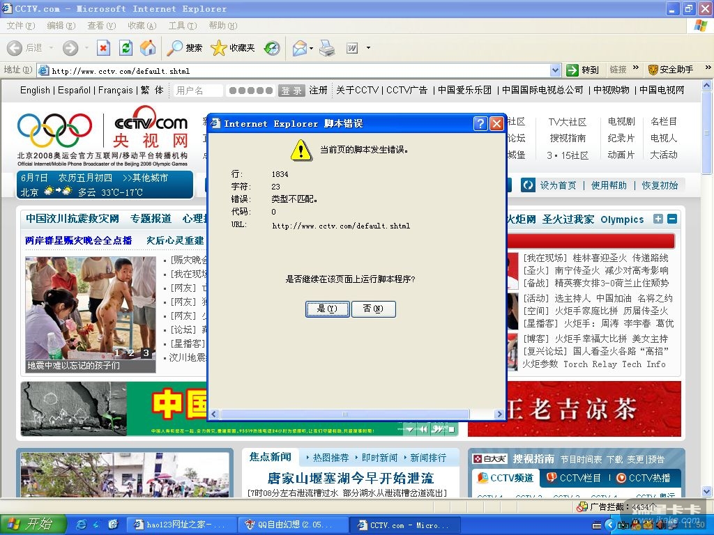 网页打开老是提示错误,怎么都关不的掉...请教..........