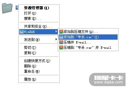把你所下载下来的东西全都打包。不要告诉我你不会打包。只要你 的电脑上装有winrar没装就去网上下载,这个就自己去搜吧,反正我是装了的。下载好后就直接在 专杀 这个文件夹上面点鼠标右键选添加到 专杀.rar如图1