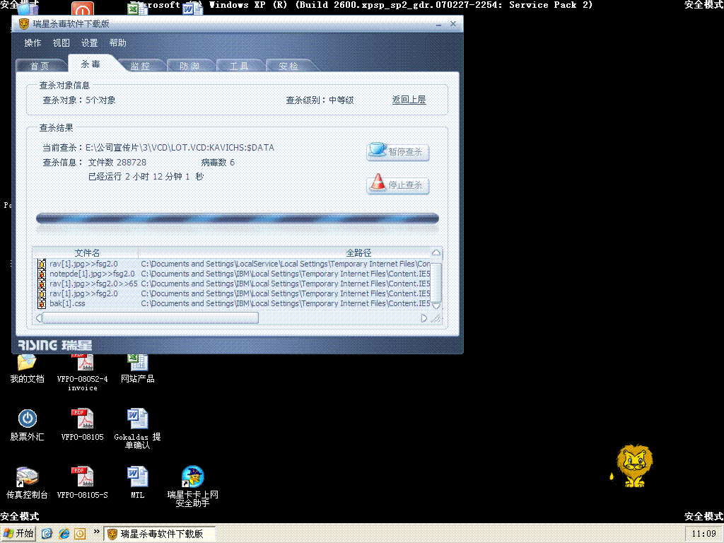 中毒了,在安全模式下杀毒,可以杀掉,但是重启后又有,杀毒结果轻看截图1/2