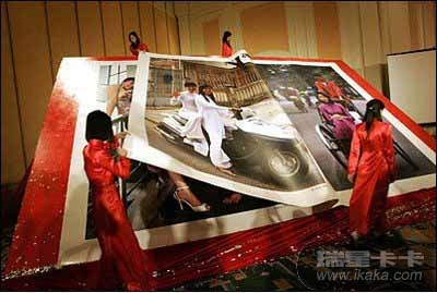 幕,这些元素在婚装上也得以体现:婚装拖尾上手工刺绣的29只吉祥的金凤凰,888