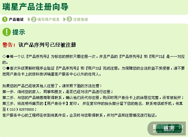 您输入的产品序列号或者用户ID号有误或者不匹配,请注意,该升级程序只适用于盒装产品,不适用于下载版。