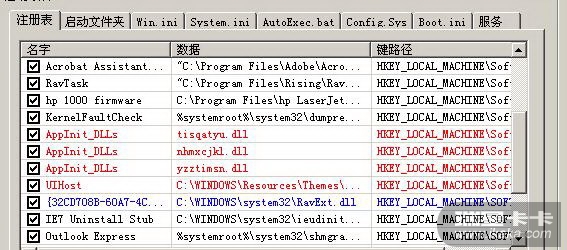 2.删除重启后使用SREng修复下面各项: 启动项目 -- 注册表之如下项删除: