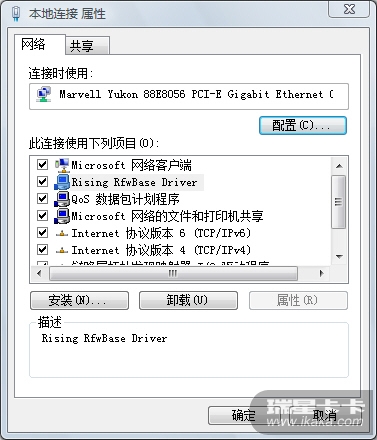 在VISTA系统中加装瑞星防火墙后,发现网络属性中增加一项:Rising RfwBase Driver(包括无线网络连接中都有发现,附图)。请问:这一选项的作用是什么?会不会影响防火墙的工作?