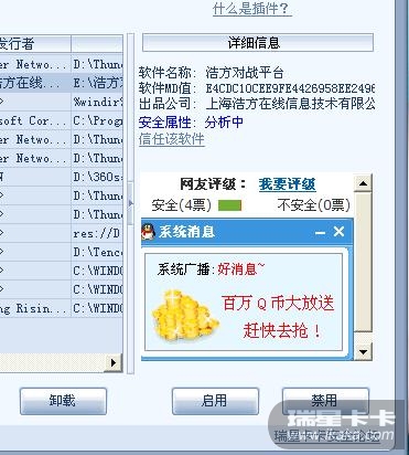 如果是上网就弹出,且已升级瑞星查毒 没有查到