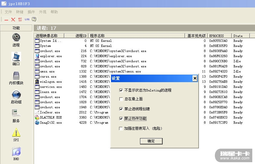 5、取消IceSword的“禁止进程创建”。