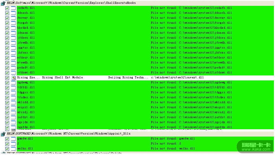 注:这类毒的手工杀毒难点在于那堆dll。那堆病毒dll可以通过SRENG等日志工具发现。