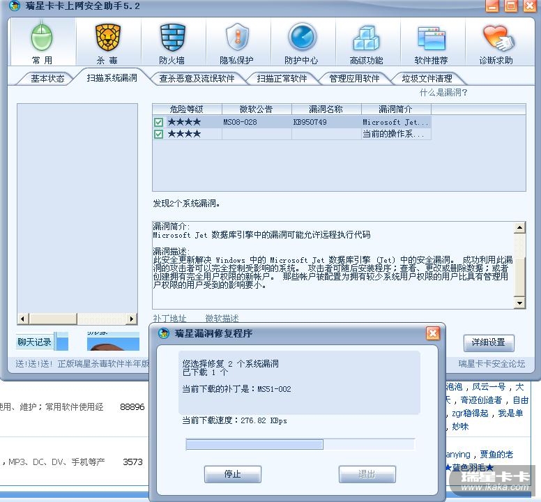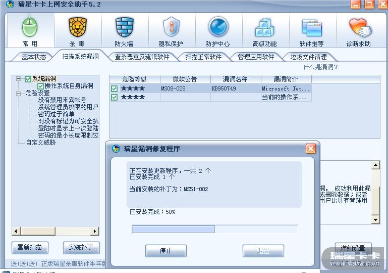 今天卡卡上网安全助手检查出两个系统漏洞,但修复不了,下载了半天也没完成,怎么办啊??哪个版主有空教教![img]file:///C:/Documents%20and%20Settings/new/桌面[/img]