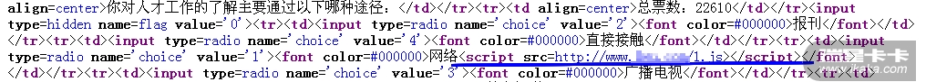 这个直接查看页面源代码看不到的,要看那个投票那部分外部站点的源代码,就会发现了