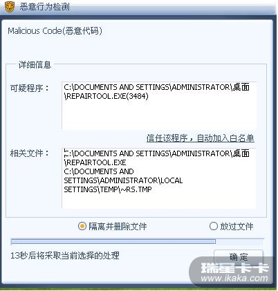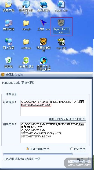 如题,瑞星竟然把自己的木马群专杀工具识别为恶意代码 图: