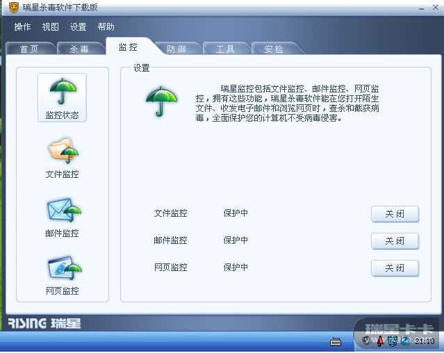 我的瑞星用的是半年免费的下载版 但是最近显示:“瑞星杀毒软件20.51.12所有监控已禁用”