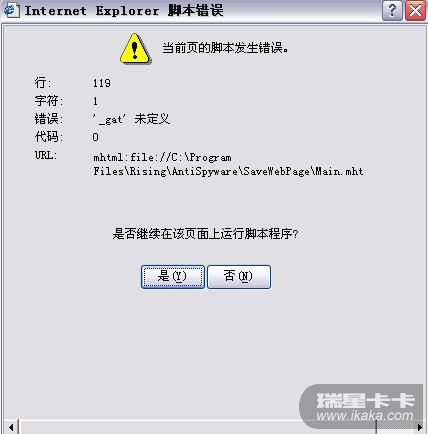 双击屏幕右下角的卡卡图标,打开卡卡对话框会弹出“ie脚本错误”,如图,这是怎么回事,刚刚绿伞变黄了。