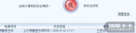为什么我那瑞星升级完后,我进行安检,里面显示安全级别为低,主要原因就是病毒库升级不符合!可是我去升级时又说我已经是最新版本,这是什么问题?请大家给我指点下!谢谢!