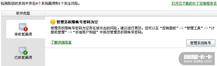 使用卡卡的一键搞定时,有次下载补丁时,没有下完,有事退出了,现在想使用"修复系统漏洞时",虽然有漏洞,但是没办法下载补丁,求助高手帮帮忙!!!!11