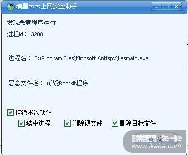 卡卡的木马行为判断与拦截功能与主动防御相似,无论程序是否正常,只要行为触发了监控规则,就会拦截。目前关于此功能的改进建议已经反馈了,谢谢!