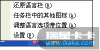 按一下操作:开始--控制面板--区域和语言选项---语言--详细信息---高级--取消"关闭高级文字服务前面哦勾",点应用 回到"设置"---语言栏--勾选"在桌面上显示语言栏"和"在任务栏中显示其他语言图标"
