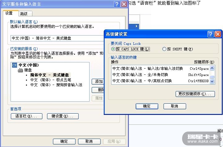 右键点击输入法图标,选“设置”,在弹出来的界面中选“键设置”就可以设置了