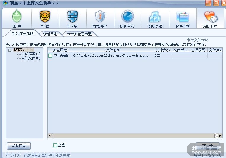 近几天卡卡有时候提示我电脑里的FTCProTime.sys文件是木马病毒,有时候又不提示。不知道是个什么文件,确实存在,删除了也没发现什么异常,重起后又会出现。