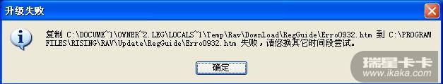 现象描述:在升级瑞星杀毒软件时,有时会提示“复制文件失败”。