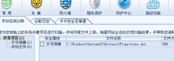 卡卡助手误报了【木马清道夫】的一个驱动,这个驱动名字是:FTCProTime.sys 。该驱动的功能是时间保护。