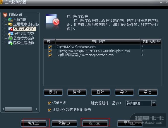 图四:以Explorer为例,对qq堂的主程序启用画红框的项目,选为拒绝,并确定